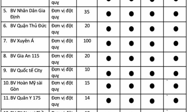 Sở Y tế TP. Hồ Chí Minh vừa công bố danh sách 17 bệnh viện có thể tiếp nhận và điều trị bệnh đột quỵ tính tới thời điểm hiện tại. Tại TP. Hồ Chí Minh, tổng cộng có 17 bệnh viện có thể tiếp nhận và can thiệp điều trị cho bệnh nhân đột quỵ.