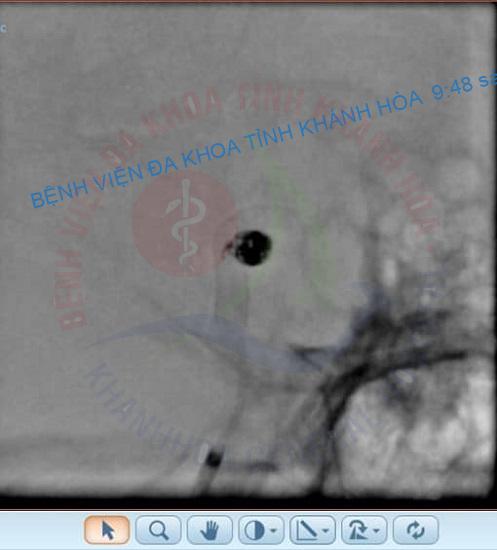 Đánh giá đây là một trường hợp khó, nguy cơ cao và là cấp cứu ngoại khoa, bệnh nhân đã được tiến hành điều trị bằng can thiệp nội mạch làm tắc túi phình. Thủ thuật này được thực hiện bởi các bác sĩ Khoa Ngoại Thần kinh – Bệnh viện Đa khoa tỉnh Khánh Hoà với sự hỗ trợ chuyên môn từ Bác sĩ Trần Quốc Tuấn – Trưởng Đơn vị Can thiệp Nội mạch Thần kinh, Bệnh viện Đại học Y Dược Thành phố Hồ Chí Minh. Sau 3 giờ với kỹ thuật đặt stent đổi hướng dòng chảy (flow diverted) và coiling bảo vệ đáy túi phình, tình trạng bệnh nhân dần ổn định và được xuất viện.