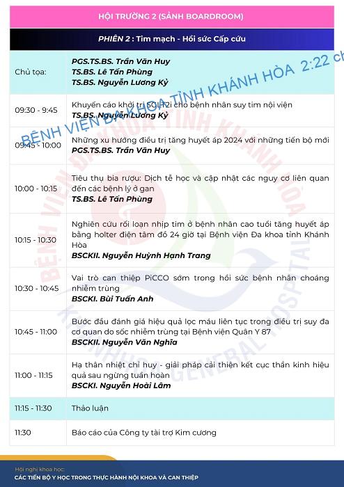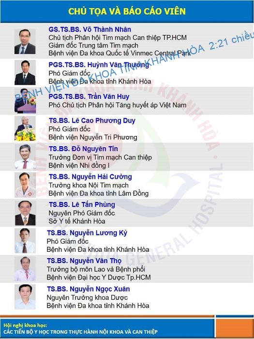 Hội nghị sẽ cập nhật các chuyên đề, báo cáo khoa học mới nhất của các nhà khoa học hàng đầu và các chuyên gia về các lĩnh vực tim mạch can thiệp, tim mạch, hồi sức cấp cứu, nội tổng quát, hô hấp, tiêu hóa.