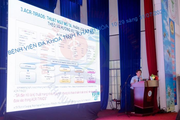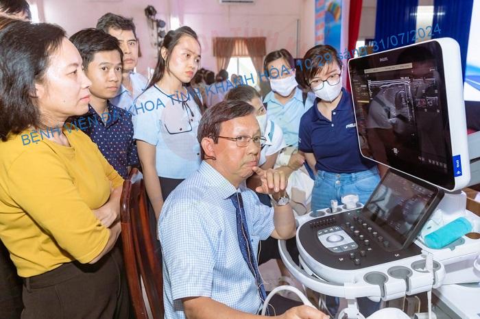 Ngày 27/7/2024, Bệnh viện Đa khoa tỉnh Khánh Hòa phối hợp cùng Chi hội Siêu âm Việt Nam, Công ty TNHH Philips Việt Nam và Công ty Hoàn Châu Medical tổ chức hội thảo khoa học trực tiếp kết hợp trực tuyến chuyên đề “Siêu âm đa thông số nốt giáp – Siêu âm cơ xương khớp”. Hội thảo có sự tham dự trực tiếp của gần 100 bác sĩ, kỹ thuật viên chuyên ngành chẩn đoán hình ảnh từ trong và ngoài tỉnh Khánh Hòa.