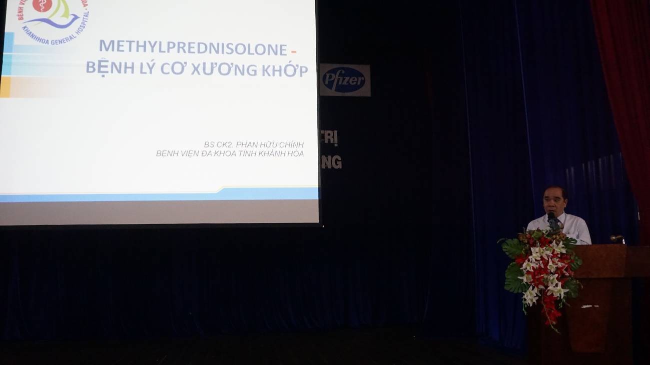 Trong khuôn khổ buổi sinh hoạt khoa học, các đại biểu đã nghe được các báo cáo được đúc kết từ kinh nghiệm y học trong và ngoài nước về vai trò của corticoid trong các bệnh lý hô hấp do báo cáo viên PGS.TS.BS Lê Tiến Dũng – Trưởng khoa Hô hấp – Đại học Y dược Thành phố Hồ Chí Minh và kinh nghiệm lâm sàng khi sử dụng corticoid trong bệnh lý cơ xương khớp do báo cáo viên BSCKII Phan Hữu Chính – Phó Giám đốc BVĐK tỉnh Khánh Hòa trình bày. Tại buổi sinh hoạt khoa học, vai trò của corticoid trong điều trị cũng được trình bày, thảo luận.