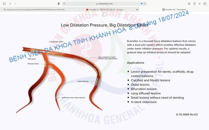Từ tháng 11/2022 đến 11/2023, Bệnh viện Đa khoa tỉnh Khánh Hòa đã thực hiện trên 30 bệnh nhân với tổn thương canxi hóa từ mức độ trung bình đến nặng, sử dụng bóng Scoring chuẩn bị tổn thương trước khi can thiệp đặt stent, bước đầu ghi nhận thành công thủ thuật 100%, không biến chứng.